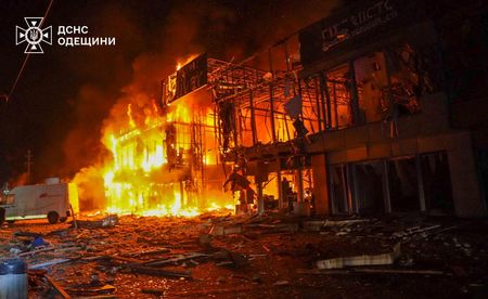 (Reuters) – Russian forces launched a mass drone attack on Ukraine’s Black Sea port of Odesa late on Thursday, injuring three people and damaging a high-rise apartment building and a shopping centre, the regional governor said.