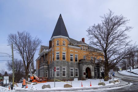 The Haskell Free Library and Opera House is located between the towns of Stanstead, Quebec, and Derby Line, Vermont.
