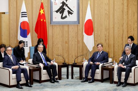 TOKYO (Reuters) – The top diplomats from Japan, China and South Korea met in Tokyo on Saturday, seeking common ground on East Asian security and economic issues amid escalating global uncertainty.