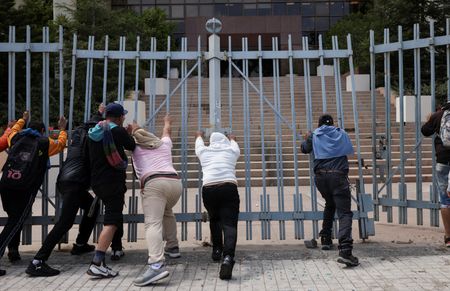 At least one police officer was injured and several people were detained after protesters knocked down a gate surrounding the building, attempting to enter Congress before being repelled by tear gas, water cannons and baton-wielding police in riot gear.