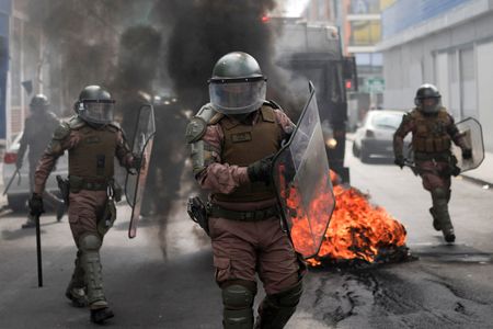 Reuters footage showed huge armored police vehicles spraying barrels of water at protesters carrying the Chilean flag.