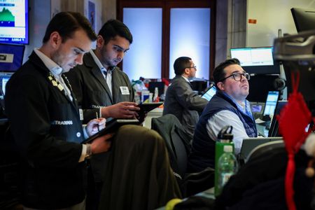(Reuters) -Wall Street stocks ended higher on Tuesday, with Apple rising and Nvidia dipping as investors assessed consumer sentiment data and bet on a more flexible trade policy stance from the Trump administration next week.