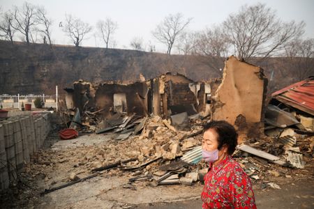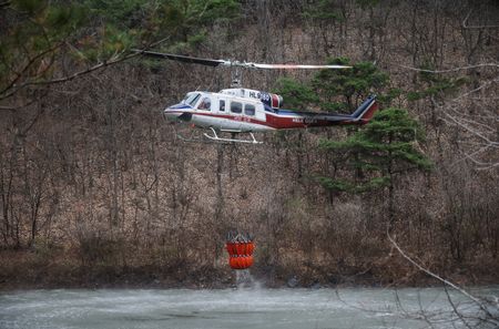 ANDONG, South Korea (Reuters) -Wildfires raging in South Korea doubled in size on Thursday from a day earlier, as authorities called the blazes the country’s worst natural fire disaster with at least 28 people killed and historic temples incinerated.