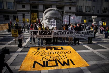 government’s military support of Israel. The government says Khalil and other international students who take part are harming U.S. foreign policy interests.