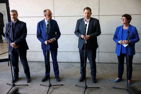 BERLIN (Reuters) – The senior leadership of Friedrich Merz’s conservative bloc and the Social Democrats were due to begin talks on hammering out a coalition agreement on Friday.