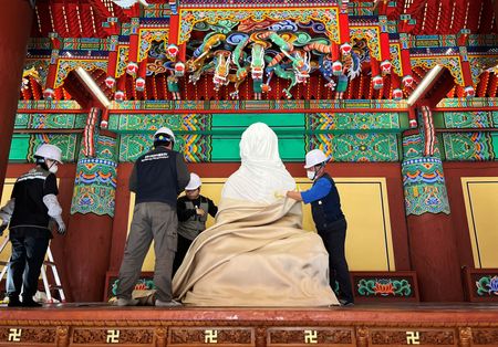 ANDONG, South Korea (Reuters) – Charred, black ruins at South Korea’s Gounsa temple stood on Thursday in stark contrast to the kaleidoscope of colours that are a trademark of the country’s historic palaces and Buddhist temples.