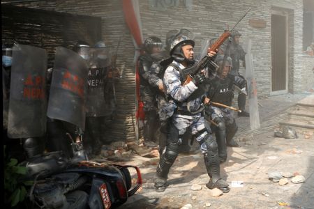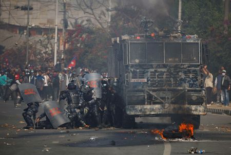 KATHMANDU (Reuters) – Nepali riot police lobbed tear gas, fired water cannon and used rattan sticks on Friday to break up a protest rally demanding the restoration of constitutional monarchy, and at least two people were killed in the violence, police said.