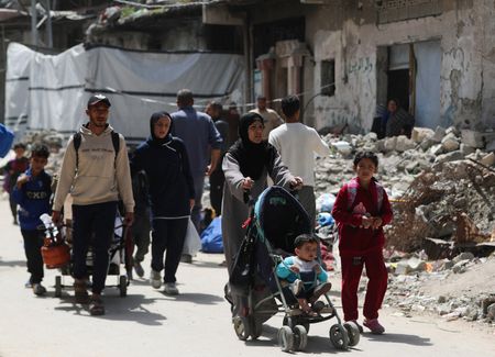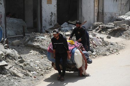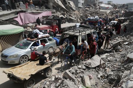 CAIRO/GAZA (Reuters) -Hundreds of thousands of fleeing Gazans sought shelter on Thursday in one of the biggest mass displacements of the war, as Israeli forces advanced into the ruins of the city of Rafah, part of a newly announced “security zone” they intend to seize.