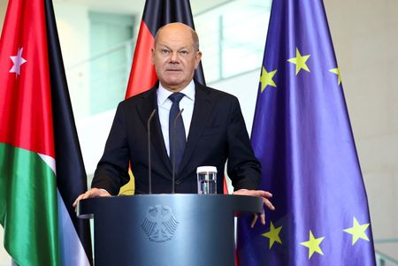 BERLIN (Reuters) – The tariffs announced by U.S. President Donald Trump will put a strain on the United States’ exports as well, said German Chancellor Olaf Scholz on Thursday.