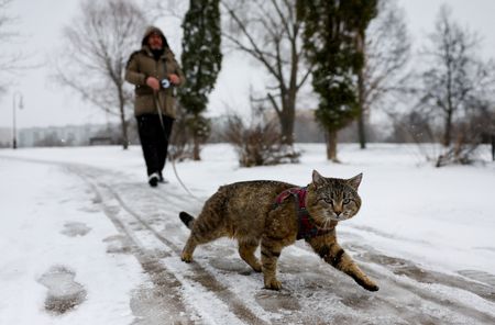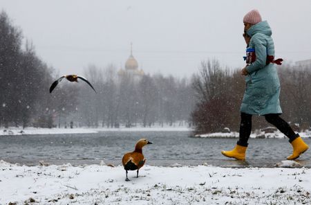 MOSCOW (Reuters) – Blizzards blanketed Moscow in snow on Sunday, covering Red Square in up to 10 cm (4 inches) of snow after an unusually mild winter in the Russian capital.