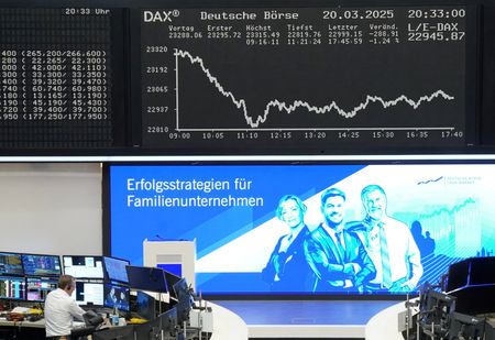 LONDON (Reuters) – European equities’ impressive start to 2025 has been obliterated in three sessions of heavy selling, while executives tot up the potential impact of U.S.