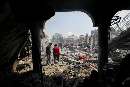 GENEVA (Reuters) -The heads of six U.N. agencies called on Monday for an urgent renewal of the ceasefire in Gaza, warning of aid shortages and hunger since Israel resumed its all-out assault with the deadliest week for Gaza’s children of the past year.