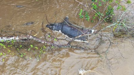 Images shared by the park show the hippopotamuses motionless on their sides and backs in the Ishasha River, or caught among foliage on the river’s muddy banks.