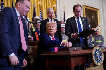 WASHINGTON (Reuters) -U.S. President Donald Trump signed executive orders on Tuesday that aim to boost coal production in his latest action that runs counter to global efforts to curb carbon emissions.
