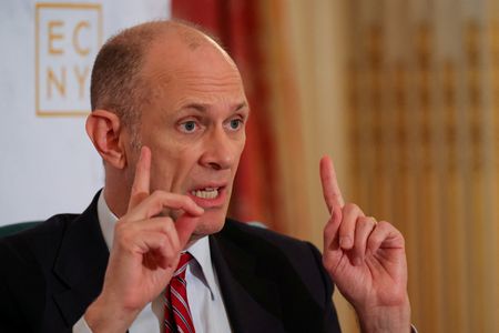 NEW YORK (Reuters) -Federal Reserve Bank of Chicago President Austan Goolsbee said Thursday high levels of uncertainty amid very aggressive trade tariffs argues for a wait-and-see approach to monetary policy, amid signs the U.S.