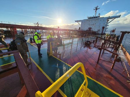 VILNIUS (Reuters) -The Estonian navy detained and boarded a Russia-bound oil tanker on an EU sanctions list on Friday, accusing it of sailing illegally without a valid country flag.