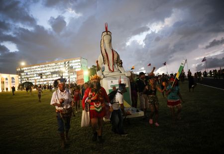 BRASILIA (Reuters) -Thousands of Indigenous people from across Brazil are rallying in the nation’s capital this week to demand protection for their land rights, fighting legislation that could make it impossible for some tribes to reclaim territory they were forced to leave.