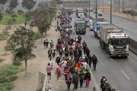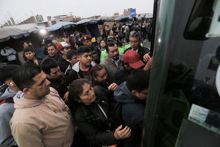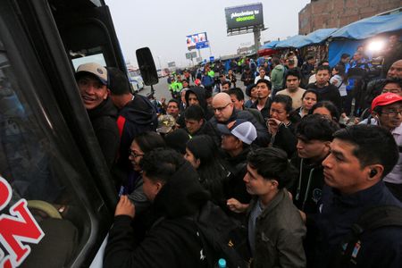 LIMA (Reuters) -Public transport workers in Peru’s capital of Lima went on strike on Thursday, stranding tens of thousands of people as they marched to Congress demanding action against a surging crime wave that has led to record numbers of murders.
