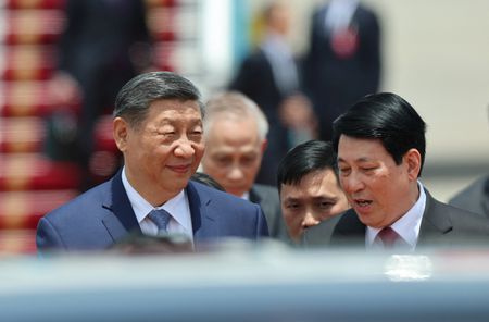 HANOI (Reuters) -China’s President Xi Jinping called on Monday for stronger ties with Vietnam on trade and supply chains amid disruptions caused by U.S.