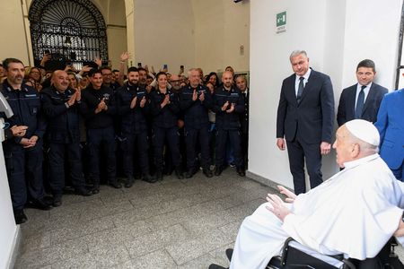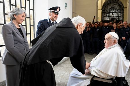 VATICAN CITY (Reuters) – Pope Francis, still recovering from double pneumonia, paid a surprise visit on Thursday to Rome’s Regina Coeli, one of Italy’s most overcrowded prisons, to offer well-wishes to inmates ahead of Easter.