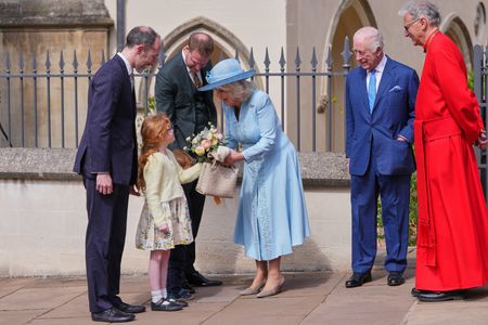 Camilla, who was handed a posy of flowers, wished “Happy Easter” to members of the crowd after the Easter Matins service.