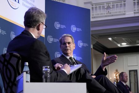 WASHINGTON (Reuters) -U.S. Treasury Secretary Scott Bessent on Wednesday called on the International Monetary Fund and World Bank to refocus on their core missions of macroeconomic stability and development, arguing that they have strayed too far into vanity projects such as climate change that have reduced their effectiveness.