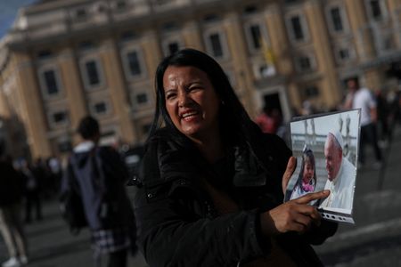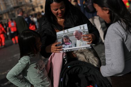 VATICAN CITY (Reuters) – Diane Karla Abano, a Filipino migrant living in Rome, has vivid memories of the day that Pope Francis touched her heart and made her feel at home, kissing her two young daughters during an audience in St.