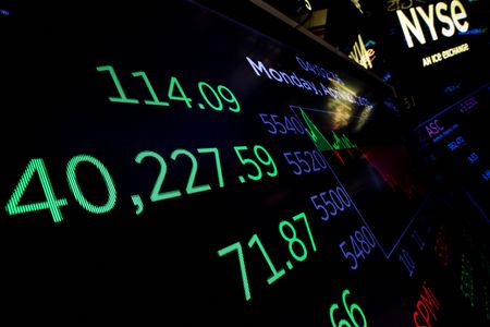NEW YORK (Reuters) -Wall Street stocks advanced on Tuesday while crude and gold prices slid as investors juggled corporate earnings, signs of progress in U.S. President Donald Trump’s tariff negotiations, and increased odds of a global recession.