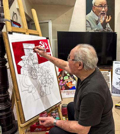 During the war, he painted posters to rally the troops and inspire North Vietnamese citizens, and continued to do so for the next 60 years.