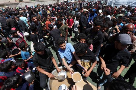 CAIRO/GENEVA/GAZA (Reuters) – It took five hours of queuing at a community kitchen in Gaza’s Nuseirat district for displaced grandmother Um Mohammad Al-Talalqa to get one meal to feed her hungry children and grandchildren.