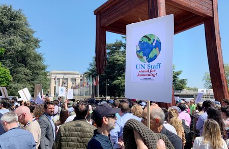 GENEVA (Reuters) -Hundreds of U.N. staff protested outside the United Nations’ European headquarters on Thursday at job losses within the global body due to major aid cuts by U.S.