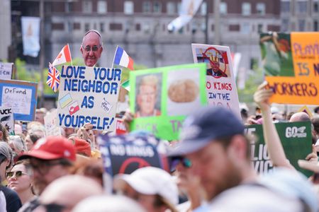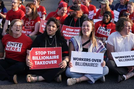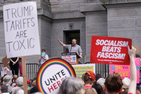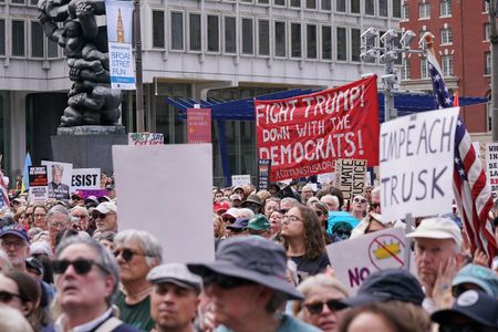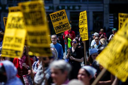 (Reuters) -Lawyers, teachers and politicians marched among thousands of demonstrators across the U.S. on Thursday to protest President Donald Trump’s policies on immigration, the targeting of lawyers and judges, and the power of wealthy decision-makers.