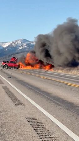 The Mercedes passenger van was transporting a tour group with 14 people aboard near Henry’s Lake when it collided with a Dodge Ram pickup, then burst into flames, police said.