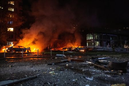 KYIV (Reuters) -A Russian overnight drone attack on Ukraine’s capital injured at least 11 people, including two children, and President Volodymyr Zelenskiy called on Sunday for a real ceasefire lasting at least a month in the more than three-year-old war.