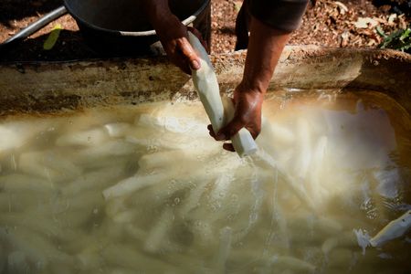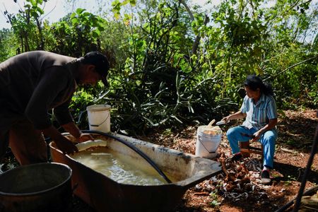 Nunez oversees the harvest, peeling, drying, grinding of the yucca root.