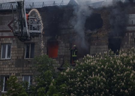 KYIV (Reuters) -Russia launched an intense drone and missile attack on Kyiv and other Ukrainian cities overnight, killing a mother and her son in the capital, amid faltering U.S.-backed attempts to broker a pause in the fighting.
