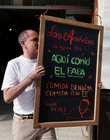 Next door, the Las Americas restaurant claimed the pope’s favorite dish was their fried chicken chicharrón with homemade sauce.