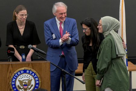 BOSTON (Reuters) – A Tufts University student from Turkey who was swept up in the campaign by President Donald Trump’s administration to deport pro-Palestinian campus activists returned to Massachusetts on Saturday after spending more than six weeks in an immigration detention center in Louisiana.