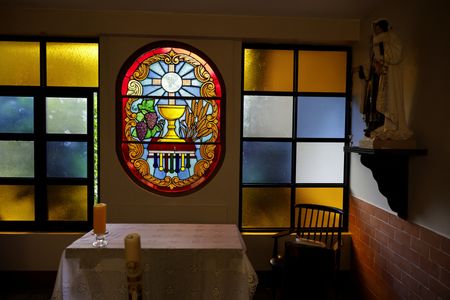 and woke up at 5 a.m. to pray in a prayer room adorned with stained-glass. Nearby sits the garage, where there is a pick-up truck similar to the one Prevost used to enjoy driving in the area.