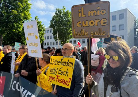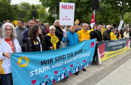 WIESBADEN (Reuters) -Commerzbank’s chief executive and hundreds of employees voiced support for the German lender’s standalone strategy as its shareholders met on Thursday, stepping up efforts to fend off advances of Italy’s UniCredit.