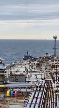 Footage on X shared by Simonyan and purporting to be filmed from the bridge of the tanker shows an Estonian navy patrol ship, helicopter and aircraft nearby.