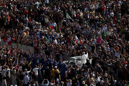 After a first ride in the popemobile through an estimated crowd of up to 200,000 in St.