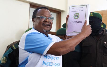 NAIROBI (Reuters) -Tanzania’s main opposition leader Tundu Lissu told his supporters to have no fear as he appeared in court on Monday on charges including treason, as President Samia Suluhu Hassan warned foreign rights activists against interference.