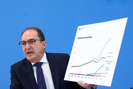 BERLIN (Reuters) -A series of closely fought elections, the war in Gaza and deepening political polarisation helped drive the number of politically motivated crimes in Germany to a record high last year, with an especially sharp growth in far-right violence.
