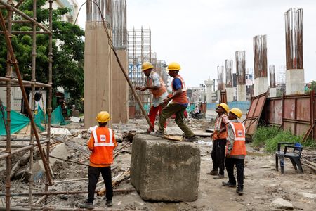 NEW DELHI (Reuters) -India’s infrastructure output grew 0.5% year-on-year in April, its slowest pace in eight months, dragged by weakness in crude oil and refinery products, government data showed on Tuesday.