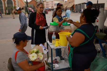On a recent afternoon in the border town of Ciudad Juarez, Delgado braved the sweltering heat to hand out flyers and chat to voters outside a local school.