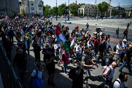 BUDAPEST (Reuters) -Hungarian opposition leader Peter Magyar walked across the border to Romania on Saturday after a week-long journey, in a attempt to win support of the ethnic Hungarians in Romania and appeal to conservative voters in the run-up to the 2026 elections.