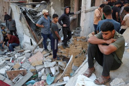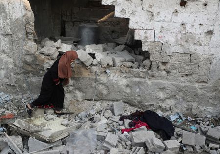 CAIRO/JERUSALEM (Reuters) – Israeli airstrikes killed at least six Palestinians guarding aid trucks against looters, Hamas officials said on Friday, as the head of the United Nations warned that only a “teaspoon” of aid was getting in following Israel’s 11-week-long blockade.