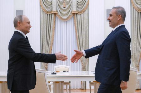 ANKARA (Reuters) -Russian President Vladimir Putin and Turkey’s foreign minister discussed at a meeting in Moscow efforts to end the war in Ukraine and developments since direct talks between the warring parties, a Turkish Foreign Ministry source said.