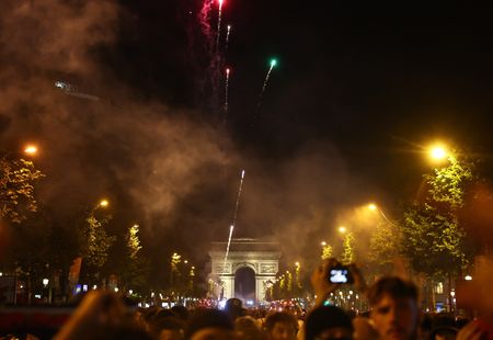 On the Champs Elysees, bus shelters were smashed up and projectiles hurled at riot police, who fired tear gas and water canons to push back surging crowds as thousands of supporters descended on the boutique-lined boulevard.